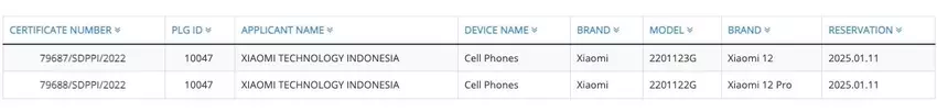 Globalne wersje modeli są certyfikowane przez regulatora Indonesia Telecom. Xiaomi 12 i Xiaomi 12 Pro można zobaczyć na stronie regulatora pod numerami odpowiednio 2201123G i 2201122G. Indeks G wskazuje, że mamy do czynienia z flagowcami na światowym rynku.