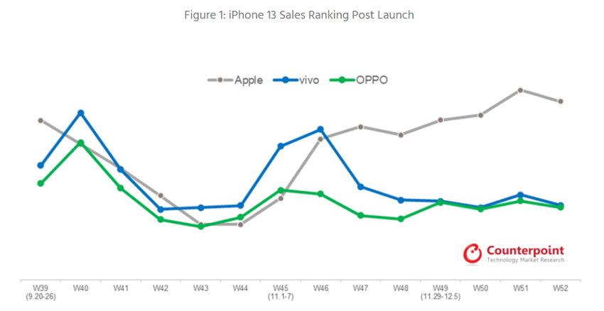 Firma z Cupertino stała się liderem rynku pod koniec ubiegłego roku, wyprzedzając Vivo. Zgłoszone przez Counterpoint Research. Od tego czasu Apple nie pozostawił szans konkurentom. Co prawda agencja analityczna nie precyzuje, jaką część rynku zajmuje.