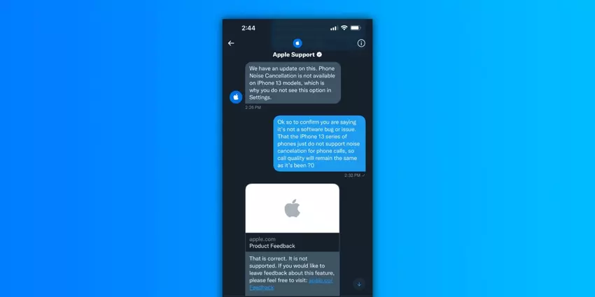 Jednak wsparcie twierdzi teraz, że smartfony iPhone 13 nie mają redukcji szumów i nie będą: