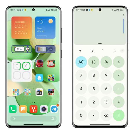 Mówimy o dynamicznych motywach Material You. Technologia pozwala na automatyczne dopasowanie akcentów, a także palety kolorów interfejsu i niektórych aplikacji do obrazu na pulpicie. Jak to wygląda, widać na poniższych zrzutach ekranu: