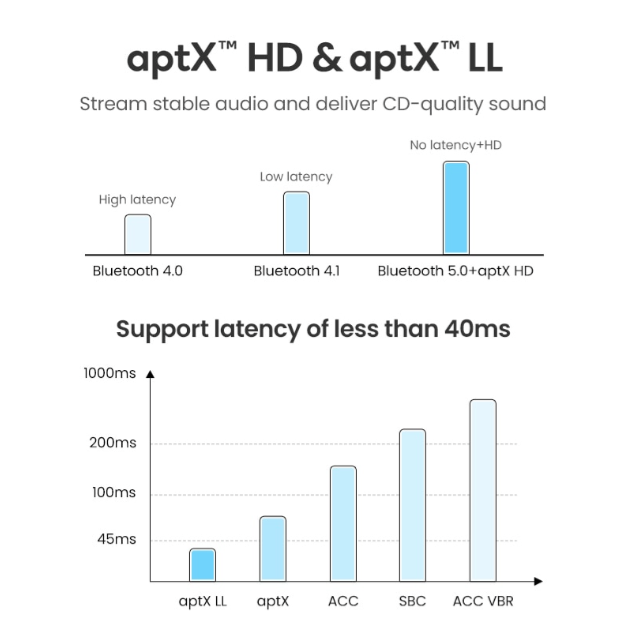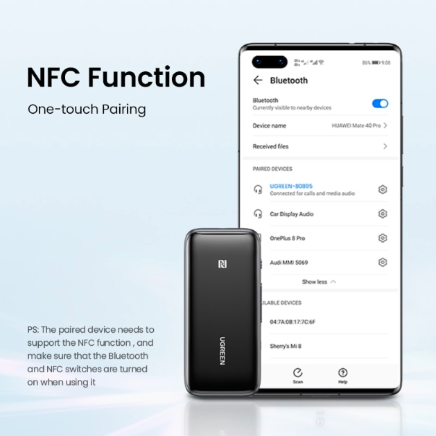 Odbiornik Ugreen Bluetooth z NFC, wbudowanym przetwornikiem cyfrowo-analogowym i obsługą aptX HD za 34 USD