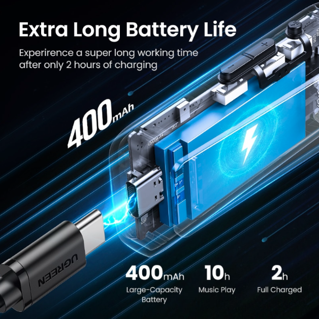 Będzie około Ugreen odbiornik bluetooth. Dzięki niemu możesz zamienić dowolne słuchawki przewodowe w bezprzewodową. Urządzenie działa na Bluetooth 5.0 i oferuje DAC, a także obsługę kodeków aptX, aptX HD, AAC, SBC i niskie opóźnienie dźwięku (mniej niż 40 ms). Gadżet posiada moduł NFC do szybkiego parowania oraz mikrofon do rozmów. Urządzenie zasilane jest baterią o pojemności 400 mAh. Ładuje się przez port USB-C. Jeśli chodzi o autonomię, wystarczy na 10 godzin słuchania muzyki.