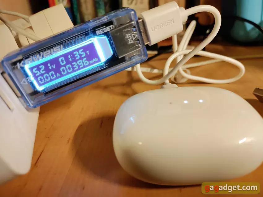 Autonomia jest dość typowa dla tej klasy słuchawek. Oferujemy do siedmiu godzin ciągłej pracy poza skrzynką ładującą i do 24 godzin bez ładowania samej skrzynki. Jak zwykle jest praktyczny problem z dokładnymi pomiarami, ale w rzeczywistości liczby plus lub minus odpowiadają zadeklarowanym. Autonomia nie jest rekordem, ale w zupełności wystarcza. Nie udało mi się znaleźć pojemności akumulatora w specyfikacji, ale pomiary pokazują, że w pudełku ładującym faktycznie znajduje się około 400 mAh, jest to typowa wartość. Według producenta pełne naładowanie uzyskuje się w dwie godziny, w praktyce wychodzi to jeszcze szybciej.