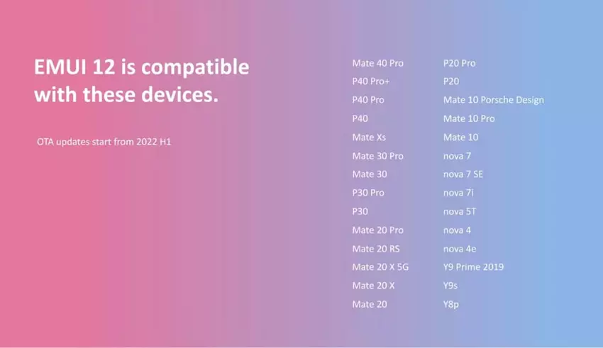 W ciągu pierwszych dwóch kwartałów 2022 roku prawie trzy tuziny smartfonów otrzymają globalną wersję EMUI 12: