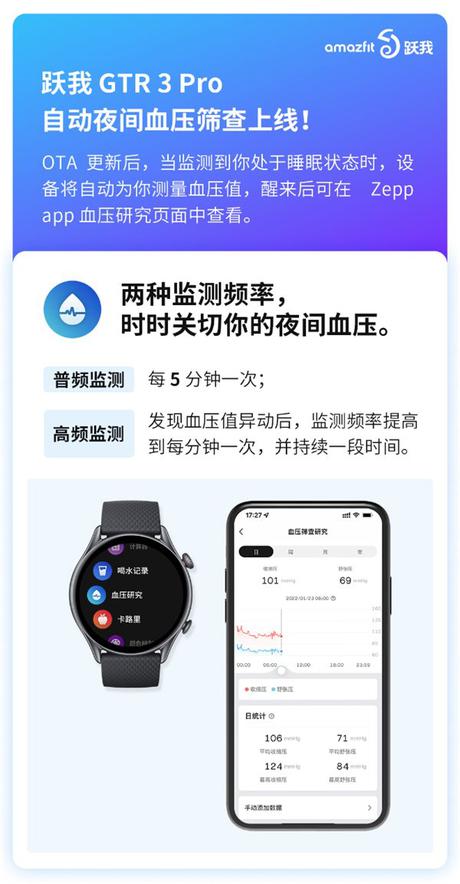 Oprogramowanie układowe jest niewielkie, ale dodaje do urządzenia nową funkcję, która pozwala automatycznie monitorować ciśnienie krwi użytkownika podczas snu. W ciągu kilku godzin odpowiadają za to specjalne algorytmy, a także czujnik optyczny PPG. Innowacja jest nadal dostępna dla użytkowników zegarków w Chinach. W innych regionach system zostanie wydany nieco później.