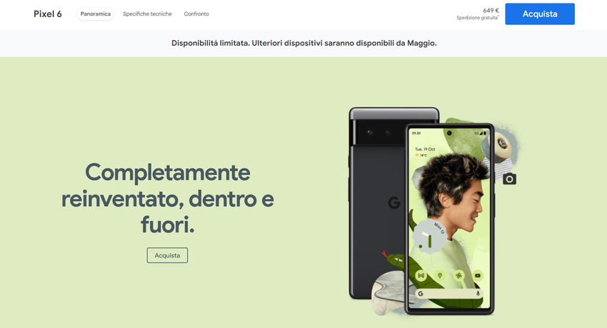 Amerykański producent po cichu wypuścił urządzenia w Hiszpanii i we Włoszech. Pierwsza partia urządzeń dostępna jest w limitowanych ilościach i tylko w kolorze czarnym Po prostu czarny . Druga partia urządzeń powinna pojawić się w maju. Pixel 6 w cenie 128 GB 649 euro, a Pixel 6 Pro z taką samą pamięcią to 899 euro.