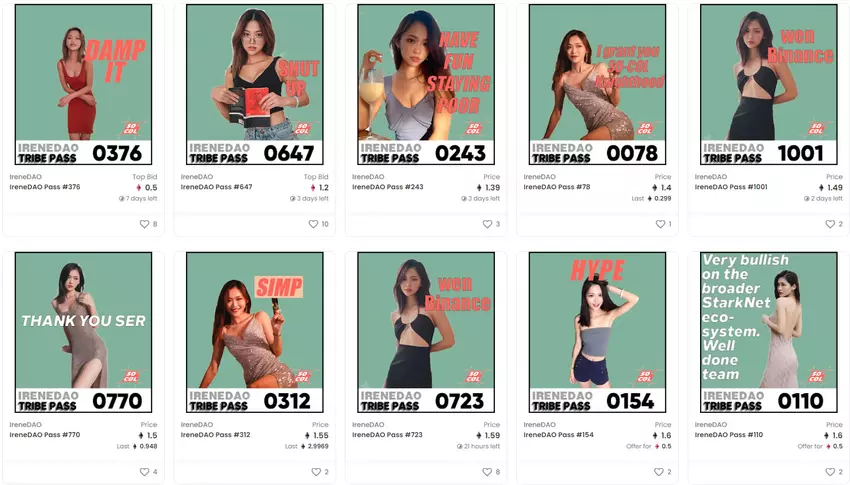 Dziewczyna ma stosunkowo niewielu subskrybentów - około 422 000. Jedna z nich doradzała tworzenie niewymiennych tokenów z naklejek Telegrama z wizerunkiem modelki. W rezultacie na stronie OpenSea pojawiło się 1106 NFT o wartości od 0,94 ETH (~ 2900 USD).
