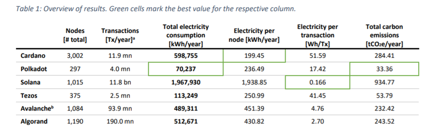 Crypto Carbon Rating Institute przeanalizował zużycie energii i ślad węglowy kilku protokołów, które działają w oparciu o algorytm Proof-of-Stake. Jak się okazało, protokół blockchain Polkadot pozostawia najmniejszy ślad węglowy w atmosferze.