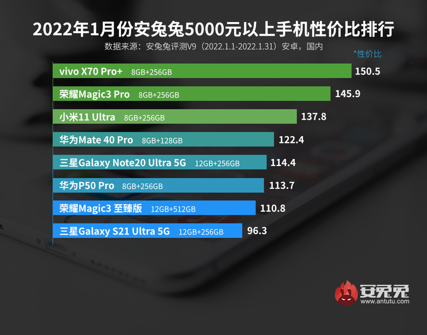 Wreszcie w segmencie od 785 dolarów smartfon vivo, X70 Pro +, niespodziewanie zajął pierwsze miejsce. W walce o pierwsze miejsce wyprzedził Honor Magic 3 Pro i Xiaomi Mi 11 Ultra, które uplasowały się odpowiednio na drugiej i trzeciej linii.
