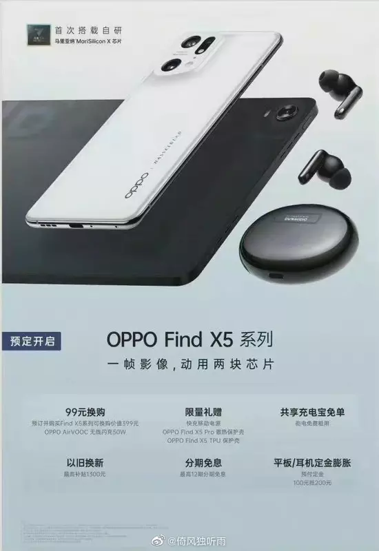 Tablet OPPO Pad, smartfon Find X5 i słuchawki Enco X2 TWS zostały przypadkowo pokazane, a ogłoszenie pojawi się wkrótce na plakacie reklamowym