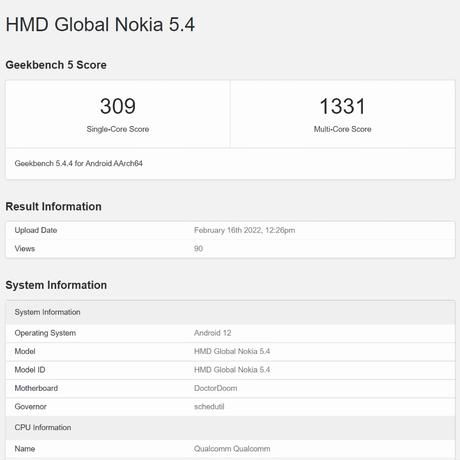Mowa o modelu Nokii 5.4. Smartfon został zauważony w bazie Dane Geekbench z systemem operacyjnym Android 12 na pokładzie. W związku z tym programiści firmy już testują nową wersję systemu operacyjnego. Najprawdopodobniej wydanie oprogramowania nastąpi w najbliższej przyszłości.
