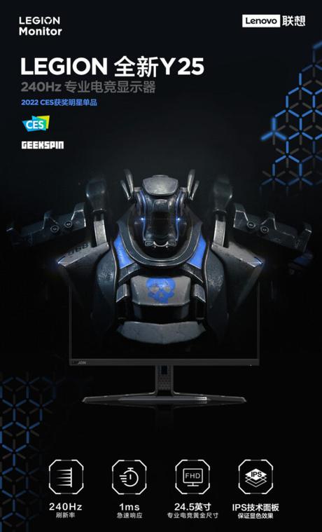 Mowa o monitorze Legion Y25. Według oficjalnego plakatu producenta nowość otrzyma wyświetlacz IPS o przekątnej 24,5 cala i rozdzielczości FHD. Panel będzie miał częstotliwość odświeżania 240 Hz, kontrast 1000:1, czas reakcji 1 ms, gama kolorów 99% sRGB i 8-bitowa głębia kolorów. Z portów urządzenie otrzyma HDMI 2.0 oraz Display Port 1.4. Nowość będzie również oferowana z dwoma głośnikami 3W i technologią AMD FreeSync Premium.