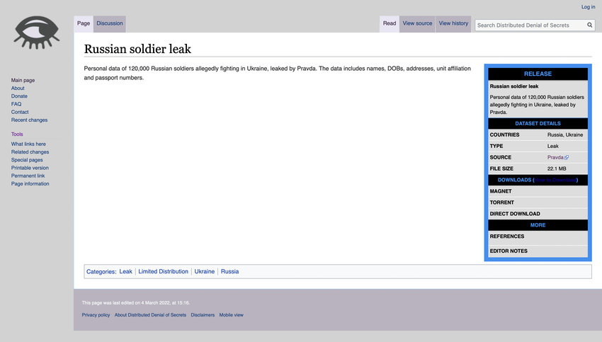 Anonimowy niedawno włamał się na serwery fabryki w Rosji, która produkuje komponenty do wyrzutni rakiet przeciwlotniczych, a teraz hakerzy przecieli do sieci informacje o 120 tys. Rosjan. Mówimy o żołnierzach, którzy walczą na Ukrainie. Dane obejmują nazwiska, daty urodzenia, adresy, przynależność do oddziałów i numery paszportów. Informacje o żołnierzach znajdziesz na stronie Tajemnice DDo.