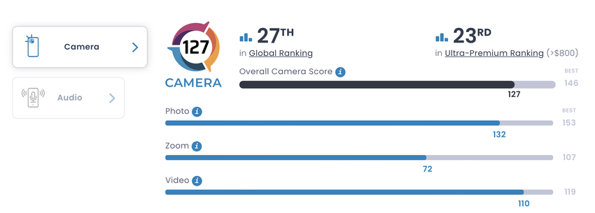 Urządzenie otrzymało 127 punktów i zajęło 27 miejsce w rankingu. To znaczy, według DxOMarkurządzenie strzela gorzej niż Xiaomi Mi 10 Pro, Xiaomi Mi 11 Pro, Vivo X60 Pro+ i iPhone 12 Pro. Wszystkie te urządzenia pojawiły się ponad rok temu.