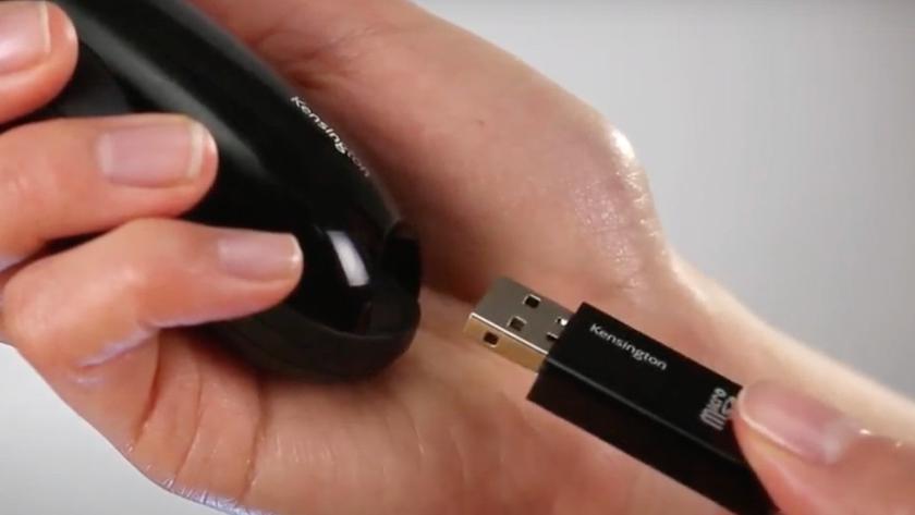 Z tyłu obudowy znajduje się również schowek (na odbiornik USB). Dzięki temu nigdy go nie zgubisz ani nie zapomnisz. W przeciwieństwie do wielu podobnych gadżetów, pilot prezentacyjny Kensington posiada wewnętrzne gniazdo kart microSD wewnątrz odbiornika USB. Umożliwia to przenoszenie na niego wszystkich plików. Może również pełnić funkcję pendrive'a.