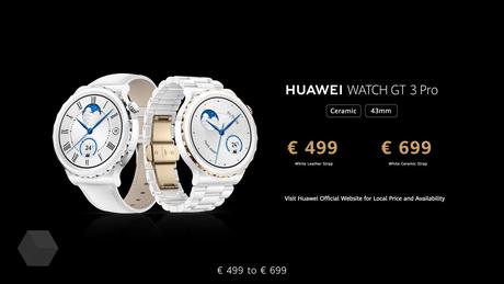 Najdroższą nowością jest inteligentny zegarek Huawei Watch GT 3 Pro w modyfikacji z ceramiczną obudową i tym samym paskiem. Zegarek kosztuje 699 euro. Opcja skórzanego paska Cię oszczędza 200 euro. Wersja Titanium oferowana jest w trzech wariantach: z silikonowym paskiem do 369 euro, ze skórą za 389 euro i z tytanem za 499 euro.