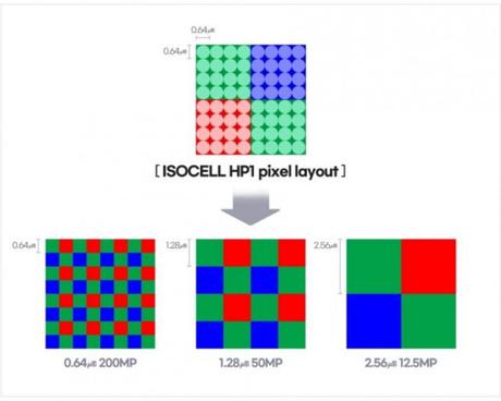 Czujnik Samsung ISCOCELL HP1 oferuje zupełnie nową technologię łączenia pikseli o nazwie ChamelonCell, która może grupować do szesnastu pikseli w celu tworzenia zdjęć o różnych rozdzielczościach, od zdjęć o rozdzielczości 12,5 megapiksela z pikselami 2,56 mikrona do zdjęć o rozdzielczości 50 megapikseli (1,28 mikrona) i ujęć o rozdzielczości 200 megapikseli (0,64 µm) w zależności od potrzeb.