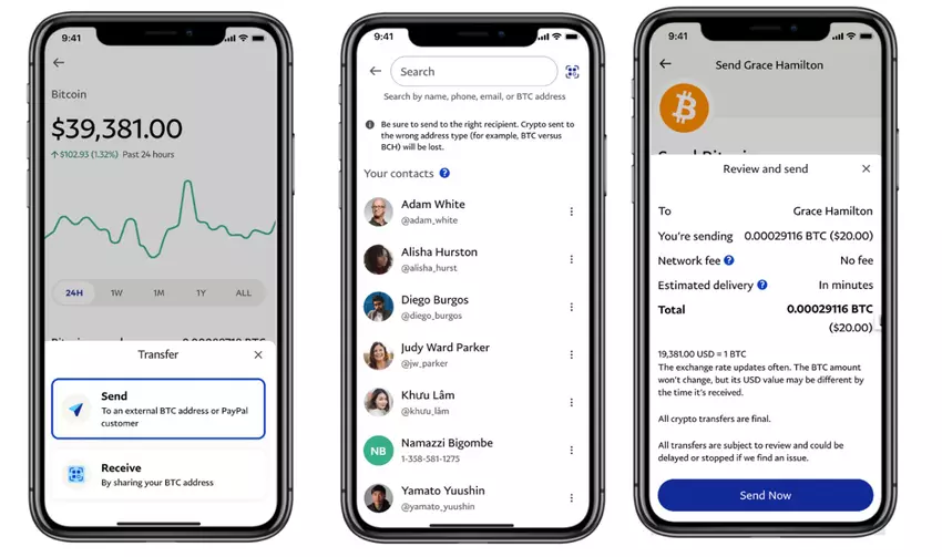 Klienci od jakiegoś czasu pytali o tę funkcjonalność, a PayPal teraz odpowiedział na żądanie, ogłaszając, że jego użytkownicy będą mogli przenosić kryptowaluty ze swoich kont do innych portfeli i giełd. Klienci będą mogli wysyłać obsługiwane monety do PayPal, przenosić krypto z aplikacji na zewnętrzne adresy kryptograficzne, w tym giełdy i portfele sprzętowe, oraz wysyłać kryptowaluty do innych użytkowników PayPal „w kilka sekund”. Kiedy klienci używają swojego konta PayPal do wysyłania pieniędzy poza sieć PayPal, są odpowiedzialni za wszelkie związane z tym opłaty, które są określane przez łańcuch bloków i zmieniają się w zależności od kryptowaluty. Nie ma żadnych kosztów związanych z przelewami wewnętrznymi - płatnościami z jednego konta PayPal na drugie.