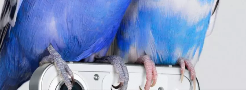 Papugi zasłaniają nam widok, więc widzimy tylko górną połowę jednego z modułów kamery. Obok aparatu widoczny jest biały kawałek plastiku oraz srebrna śruba.