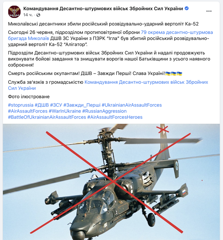 Spadochroniarze Nikołajewa zestrzelili rosyjskiego Ka-52 „Aligatora”: jeden taki śmigłowiec kosztuje 16 000 000