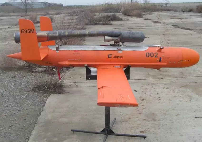 Rosyjski E95 to cel powietrzny wykorzystywany podczas ćwiczeń. Zewnętrznie dron jest podobny do Doodlebuga V1 z II wojny światowej, zarówno pod względem układu, jak i mocy. UAV może osiągnąć prędkość do 400 km/h, a czas lotu to 30 minut.