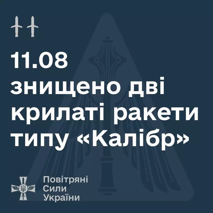 11 sierpnia o 13:30 (EET) za pomocą obrony przeciwlotniczej w obwodzie charkowskim zniszczono dwa pociski manewrujące Calibre. Oba zostały wystrzelone z Morza Czarnego. Poinformuje o tym Dowództwo Sił Powietrznych Ukrainy. Koszt jednej rakiety to 6$ 500 000.