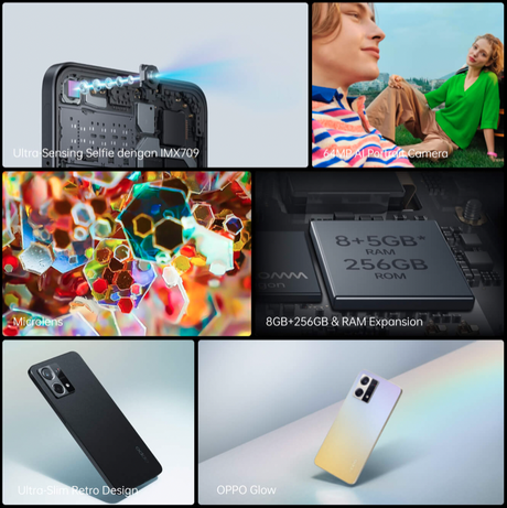 Nowość nazwano OPPO Reno 8 4G. Gadżet otrzymał design w stylu innych smartfonów z tej serii, a także 6,43-calowy wyświetlacz z matrycą AMOLED, rozdzielczością FHD+ i częstotliwością odświeżania 90 Hz. W lewym rogu panelu umieszczono mały otwór na przedni aparat o rozdzielczości 32 MP. Główny z kolei ma sensor 64 MP + 2 MP + 2 MP.