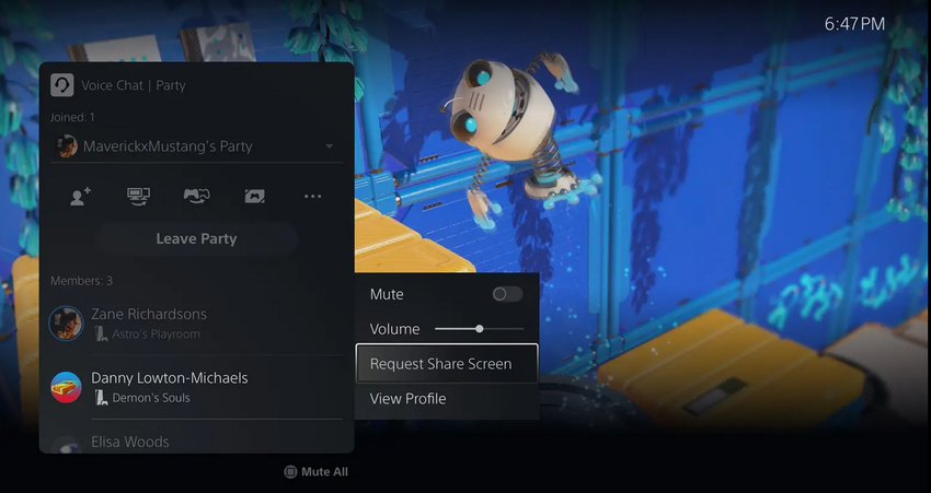 Pojawi się opcja poproszenia członków drużyny o uruchomienie Udostępnij ekran, aby obejrzeć ich grę.