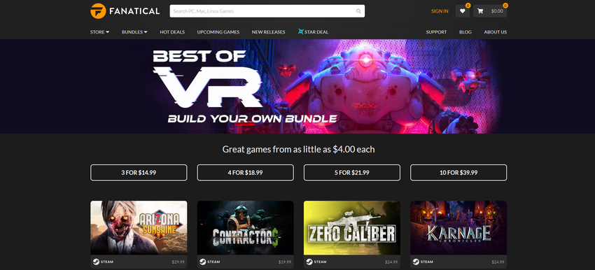Best of VR: Fanatical Digital Store uruchomił promocję, w której możesz stworzyć swój własny zestaw 3, 4, 5 lub 10 gier VR. Cena 15-40$