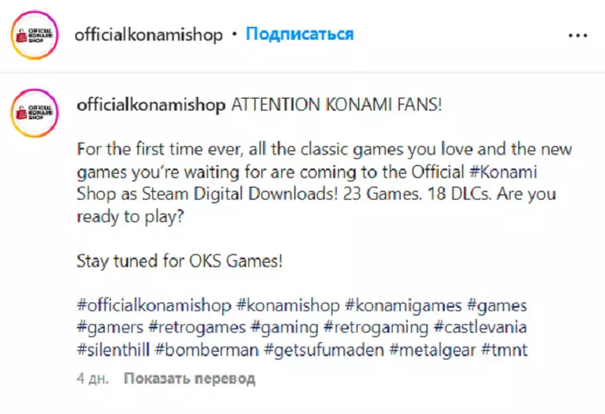 Tagi postów to Metal Gear Solid i Castlevania. Wiele tytułów z serii trudno jest nabyć cyfrowo i być może Konami uczyni je bardziej dostępnymi. Według plotek w tej chwili powstaje kilka nowych gier z serii Silent Hill, co może być dodatkową motywacją do wypuszczania starych części na Steam.