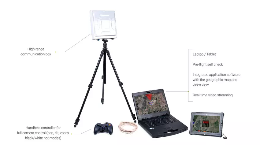 SWITCH UAV waży mniej niż 7 kg. Korpus drona posiada wodoodporność IP53. Dron wyposażony jest w kamerę główną HD z 25-krotnym zoomem. W pobliżu zainstalowana jest kamera termowizyjna o rozdzielczości 640 x 480 pikseli.