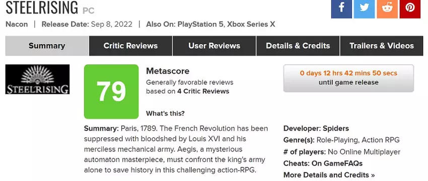 Jednak większość ekspertów zgadza się, że Steelrising to zbyt ambitny projekt jak na tak skromne studio jak Spiders. Autorzy wpadli na świetny pomysł, ale wyraźnie zabrakło im budżetu i doświadczenia w tym gatunku, by stworzyć naprawdę imponującą grę. Jednak nawet taki wynik został uznany przez dziennikarzy za godny.