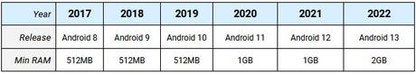 Tak więc, począwszy od Androida 13, smartfon będzie potrzebował co najmniej 2GB pamięci RAM i 16GB pamięci wewnętrznej, aby uruchomić aplikacje GMS Google. Dotyczy to nawet urządzeń z systemem Android Go, które zazwyczaj celują w budżetowe telefony z małą ilością pamięci RAM.