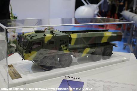 Na wystawę MSPO 2022 w Polsce ukraiński przemysł obronny przywiózł makietę systemu wielokrotnych wyrzutni rakietowych Volha na nowym podwoziu.