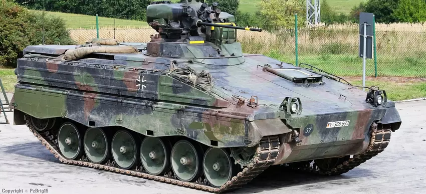Marder to niemiecki gąsienicowy bojowy wóz piechoty. W służbie Bundeswehry znajduje się od lat 70. BMP posiada wiele modyfikacji i mieści do 10 osób. Marder może pochwalić się szczelnym kadłubem wykonanym z kilku odmian płyt pancernych o grubości do 30 mm. Chronią one przód BMP przed pociskami 20 mm i 25 mm z odległości 200 m, a boki przed odłamkami i bronią strzelecką 7,62 mm. Uzbrojenie składa się z 20 mm armaty automatycznej RH 202 i 7,62 mm karabinu maszynowego MG3 zamontowanych w tandemie. Na dachu przedziału dla żołnierzy zamontowano również karabin maszynowy.