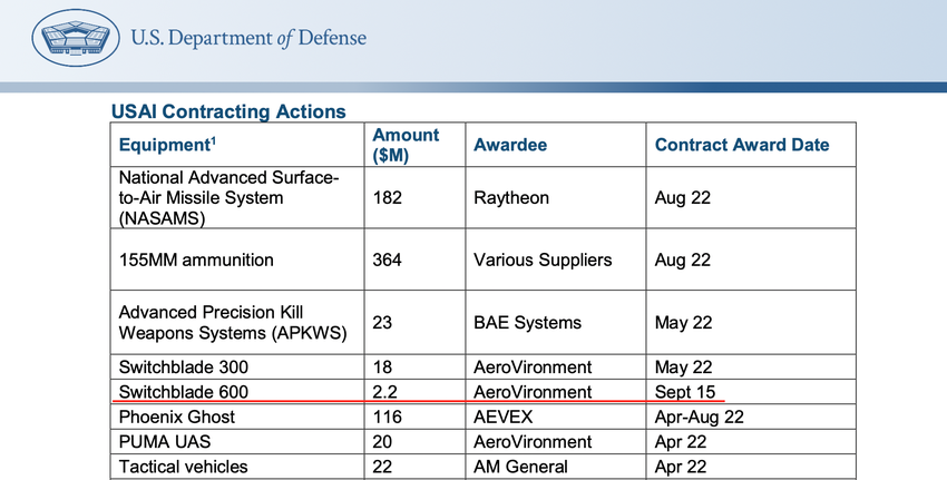 Pentagon kupuje drony kamikaze Switchblade 600 dla AFU; mogą one latać z prędkością 185 km/h i uderzać w cele oddalone nawet o 40 km