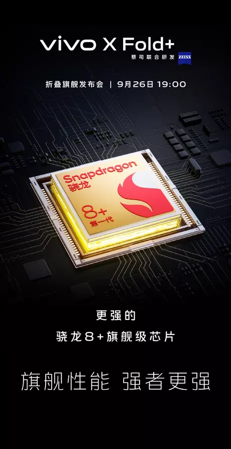Według oficjalnych teaserów, vivo X Fold+ będzie napędzany przez aktualnie flagowy procesor Qualcomm Snapdragon 8+ Gen 1. Dla porównania, w zwykłej wersji vivo X Fold znajdziemy układ Snapdragon 8 Gen 1. Oprócz tego nowość będzie miała zwiększoną zdolność ładowania z 60W do 80W.
