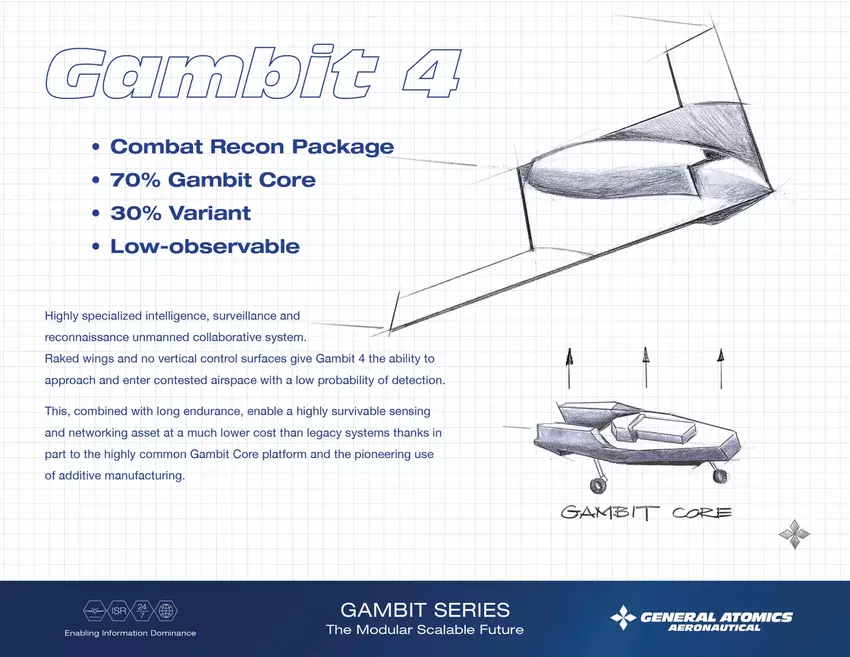 Amerykańska firma General Atomics Aeronautical Systems zapowiedziała serię modułowych dronów Gambit, przeznaczonych do użycia w połączeniu z samolotami załogowymi.