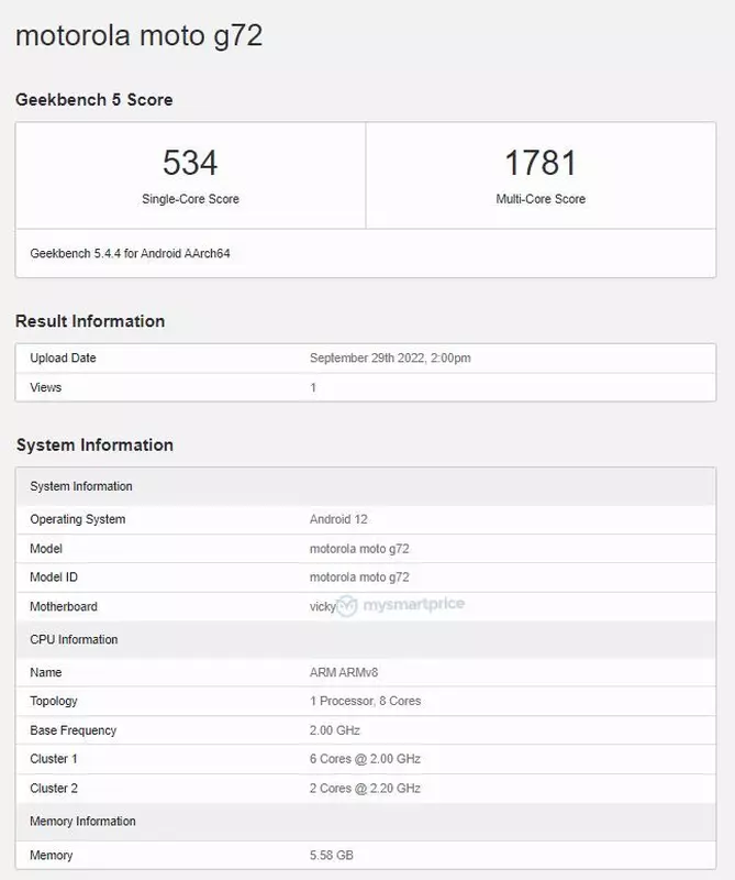Jeszcze niezapowiedziany smartfon Moto G72 został dostrzeżony w bazie testów wydajności Geekbench.