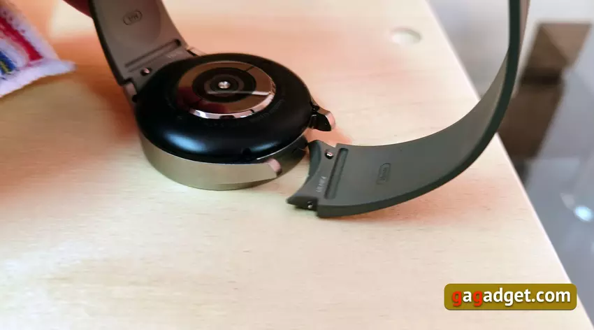 Samsung Galaxy Watch5 Pro posiada w zestawie silikonowy pasek w odpowiednim kolorze. Jest przyjemna w dotyku, wygodna i dość elastyczna. Wersja Pro posiada również nietypowe magnetyczne zapięcie, które również wykonane jest z tytanu o tym samym kolorze co sam smartwatch. Zapięcie to ma zarówno pozytywne, jak i negatywne strony. Jest to bardzo wygodne podczas bezpośredniego korzystania z Samsunga Galaxy Watch5 Pro. Konstrukcja nie przewiduje jednak całkowitego oddzielenia części paska, co nie jest zbyt wygodne podczas ładowania z bezprzewodowych ładowarek innych firm lub ze smartfona.
