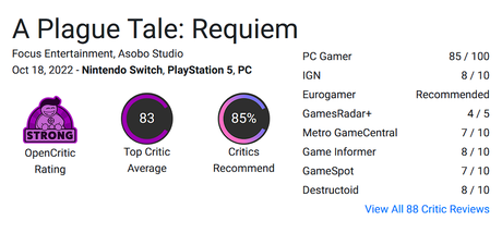Pierwsze szacunki dotyczące A Plague Tale: Requiem. Gra jest chwalona za historię i oprawę wizualną, ale zwraca się uwagę na fatalną optymalizację i błędy