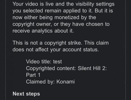 Twórca kanału YouTube SHN Survival Horror Network uruchomił testowy stream nadchodzącej prezentacji Konami, ale otrzymał blokadę transmisji. W wiadomości czytamy, że naruszył on prawa autorskie poprzez streaming pewnej gry Silent Hill 2: Part 1.
