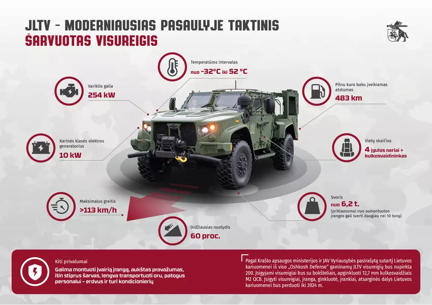 Na stronie internetowej ministerstwa obrony kraju pojawił się stosowny komunikat. Mówimy o dodatkowej partii 300 pojazdów. To w sumie 500 amerykańskich pojazdów opancerzonych JLTV dla litewskiej armii. Kwota umowy nie została nazwana. Przy okazji, w ramach nowego kontraktu pierwsze pojazdy mają zostać dostarczone na Litwę już w 2023 roku.