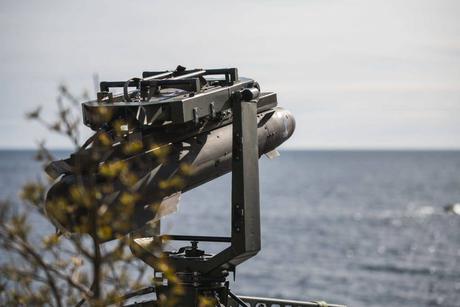 AFU pokazuje szwedzki przeciwokrętowy pocisk kierowany RBS-17 wystrzelony przeciwko celowi naziemnemu.