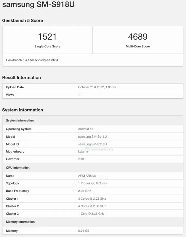 Po Samsungu Galaxy S23, wersja Ultra również przeszła test wydajności w programie Geekbench 5.