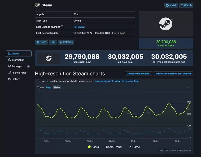 23 października liczba jednoczesnych użytkowników przekroczyła 30 milionów, co było absolutnym rekordem dla platformy Valve.