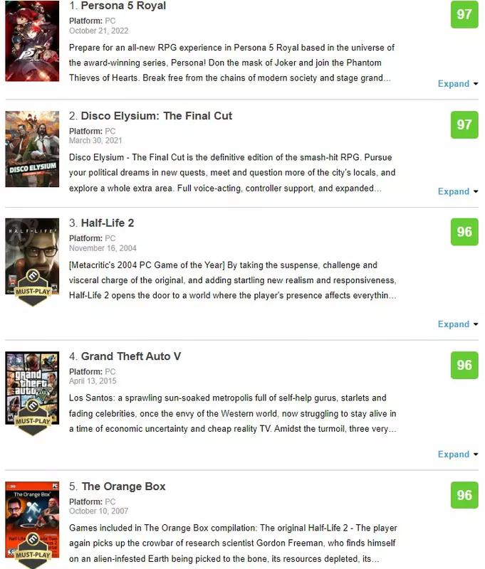 Japońskie RPG pokonało uznane hity, takie jak Disco Elysium: The Final Cut, Half-Life i Half-Life 2, Grand Theft Auto V i Bioshock.