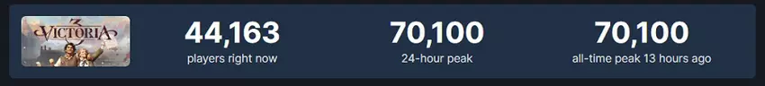 Szczyt online Victorii 3 przekroczył już 70 000 osób, co jest nieporównywalnie większą popularnością niż poprzednia część Victorii, w której jednorazowo logowało się zaledwie 3400 osób.