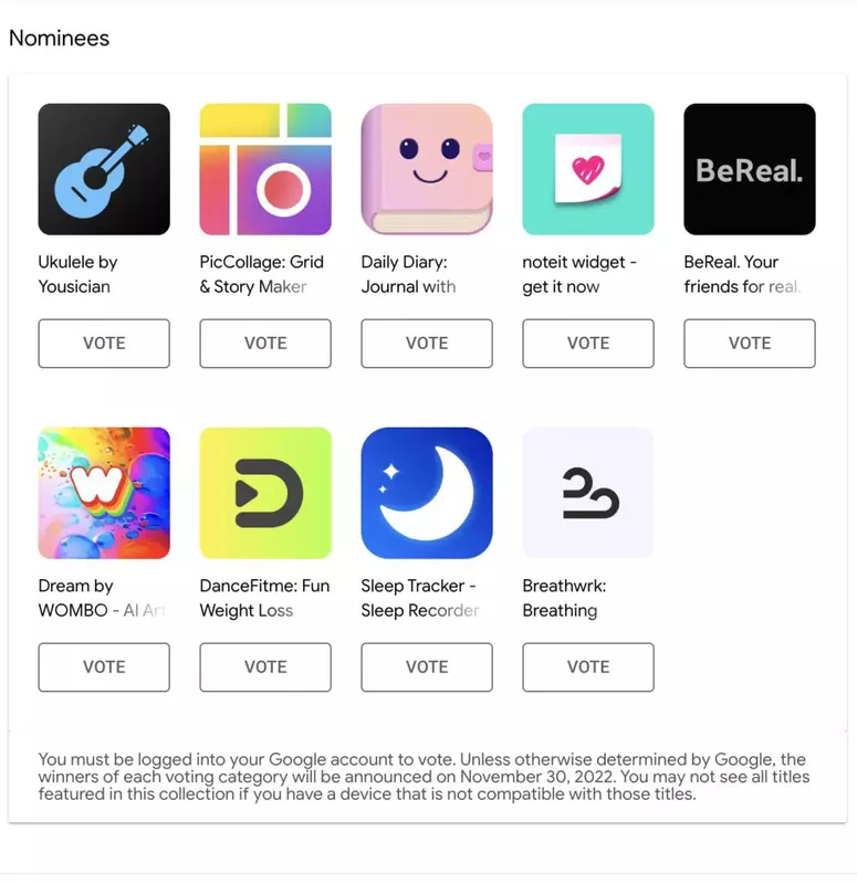 Google uruchomiło w Sklepie Play głosowanie na najlepszą grę i aplikację na Androida roku 2022.