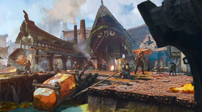 Twórcy God of War: Ragnarok opowiadał o świecie krasnoludów Svartalheim, gdzie wśród różnych biomów powstaje przemysłowe miasto